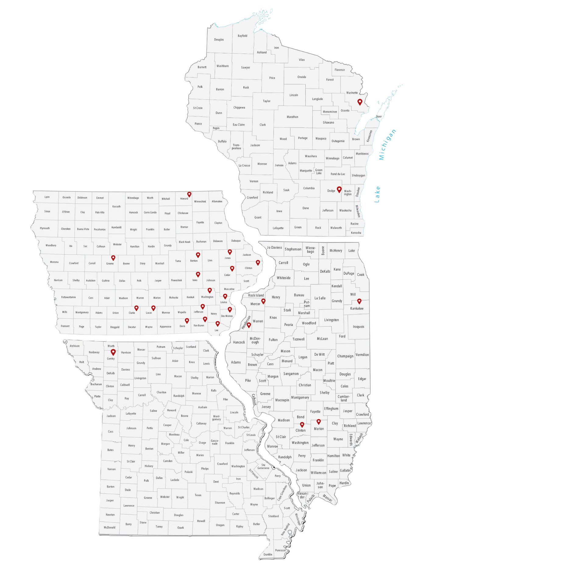 Iowa | Missouri | Minnesota | South Dakota | Nebraska | Illinois | Wisconsin